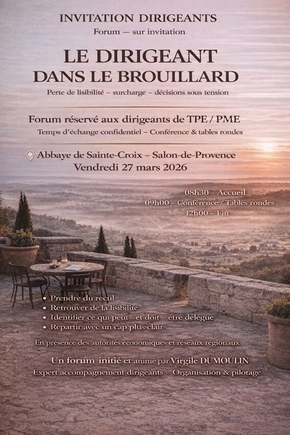 Le vendredi 27 mars 2026, j’aurai le plaisir de participer à un forum dédié aux dirigeants de TPE et PME, organisé à l’Abbaye de Sainte-Croix à Salon-de-Provence.